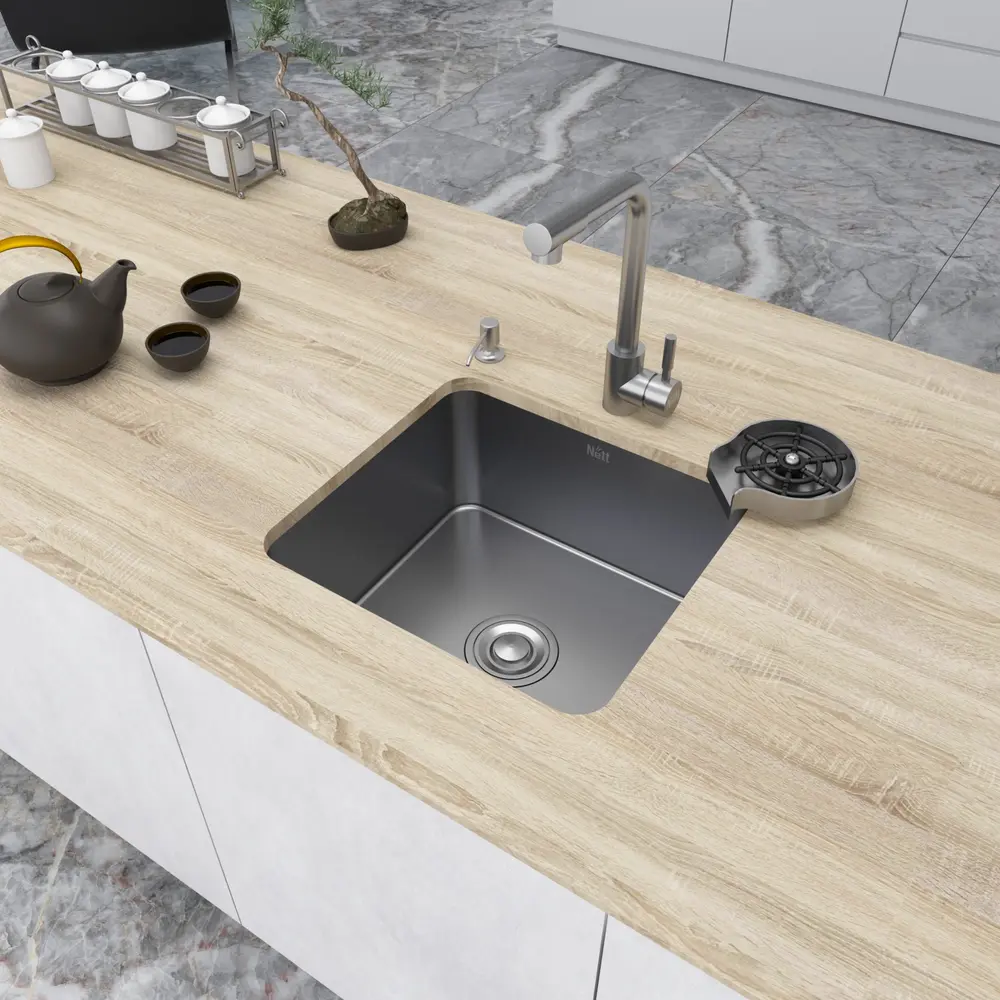 Ця кухонна мийка, виконана з високоякісної нержавіючої сталі 304, відрізняється стійкістю до агресивних хімічних реагентів та здатністю витримувати короткочасну дію температур до 900°C.