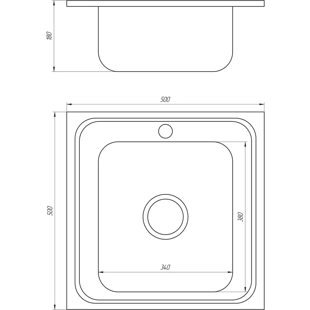 MR 5050 Мийка прямокутна накладна 500х500х180 Satin