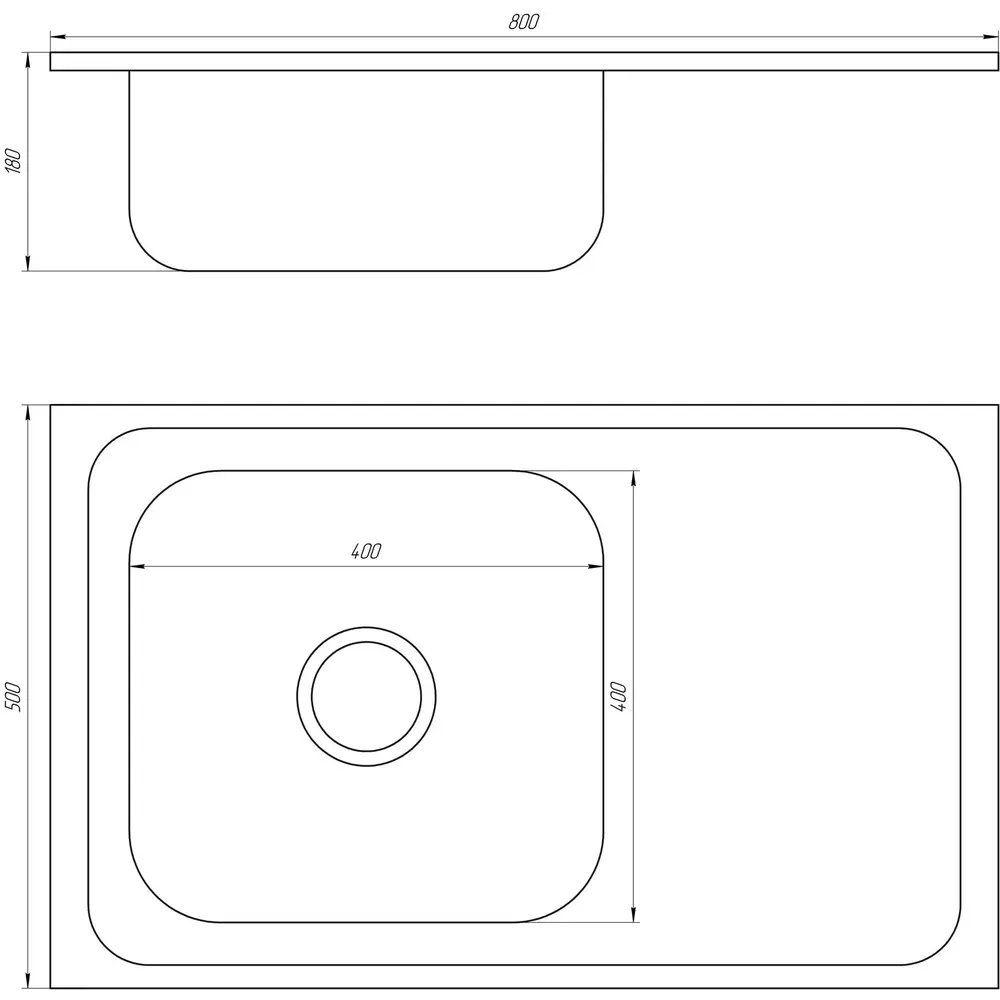 MR 8050 Мийка прямокутна накладна 800х500х180 Matt Left