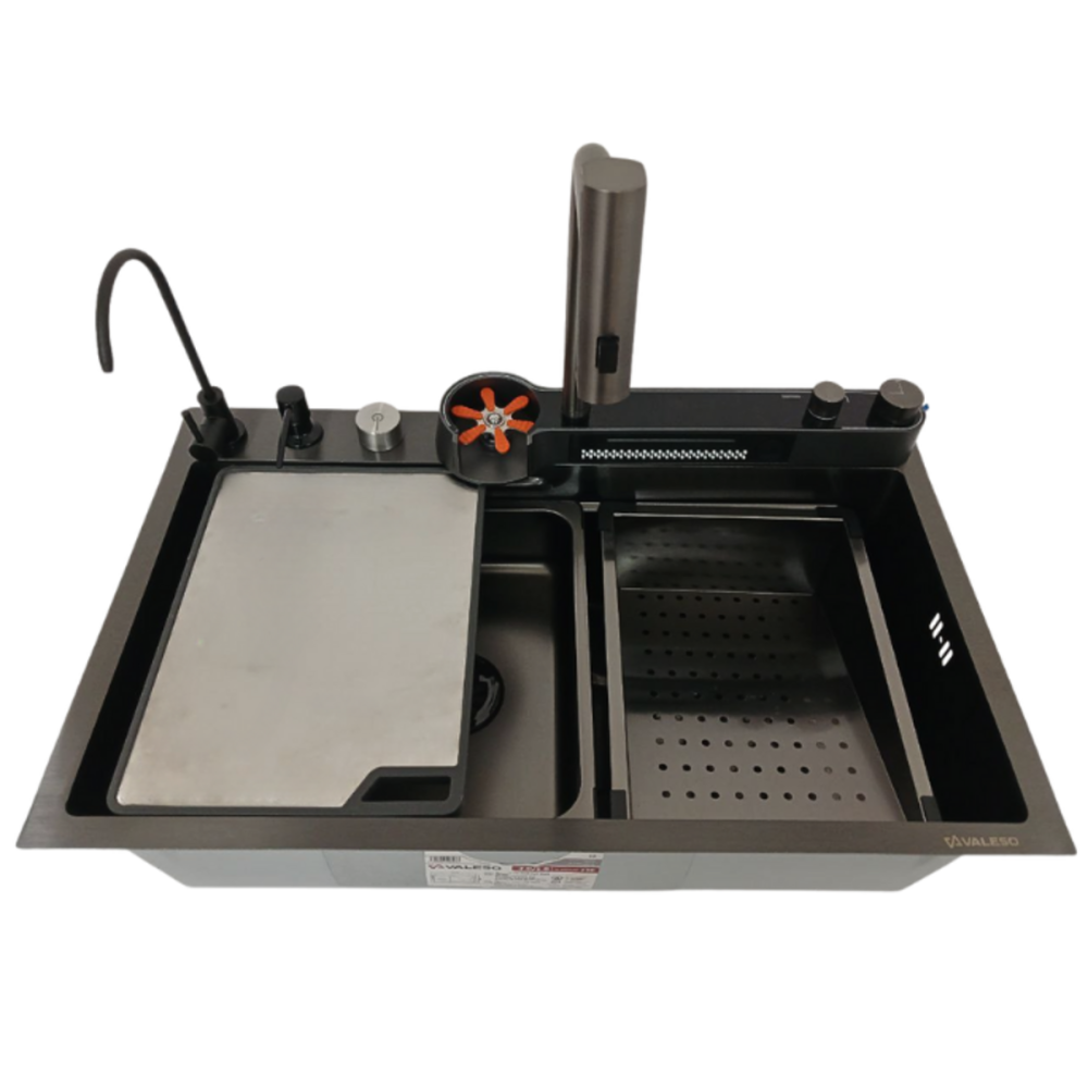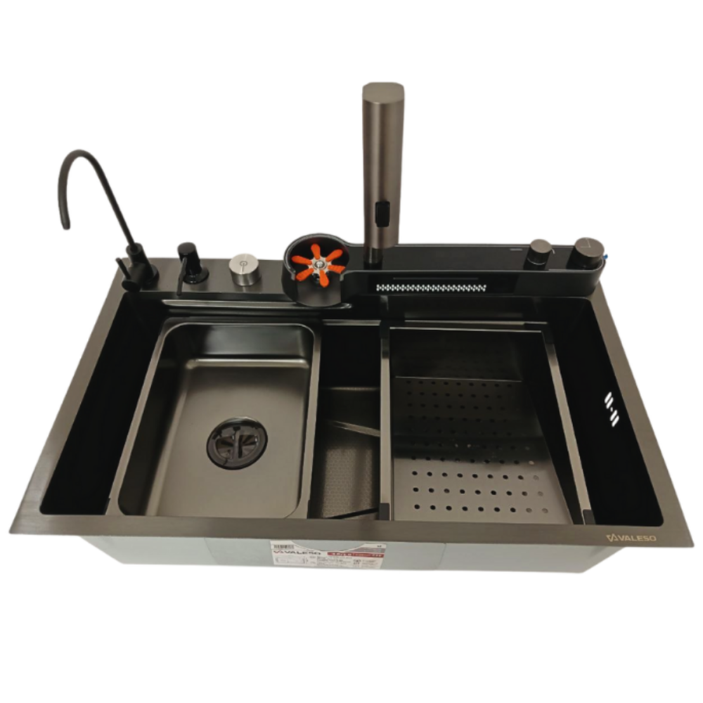 Превратите свою кухню в многофункциональную рабочую станцию с инновационной мойкой Valeso Handmade "Водопад" в роскошном PVD черном исполнении. Эта модель сочетает в себе стильный современный дизайн и полный набор функций, делающих кулинарные процессы максимально комфортными.