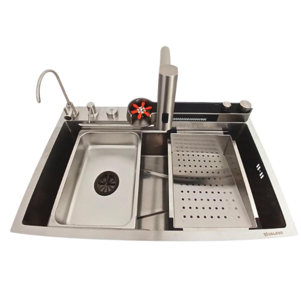Превратите свою кухню в многофункциональную рабочую станцию с инновационной мойкой Valeso Handmade "Водопад" в элегантном сатиновом исполнении. Эта модель сочетает в себе стильный современный дизайн и полный набор функций, делающих кулинарные процессы максимально комфортными.