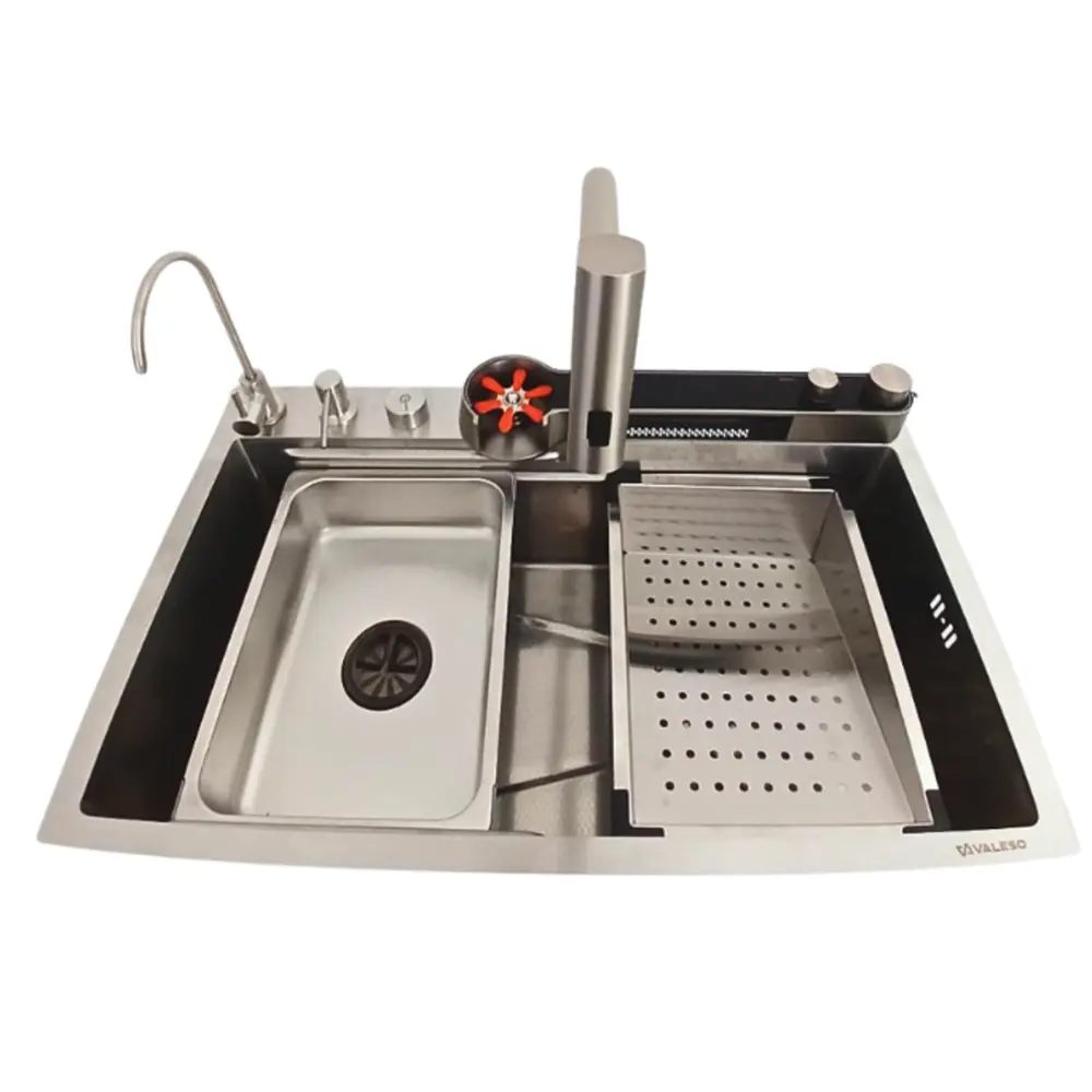 Превратите свою кухню в многофункциональную рабочую станцию с инновационной мойкой VALESO Handmade "Водопад" в элегантном сатиновом исполнении. Эта модель сочетает в себе стильный современный дизайн и полный набор функций, делающих кулинарные процессы максимально комфортными.
