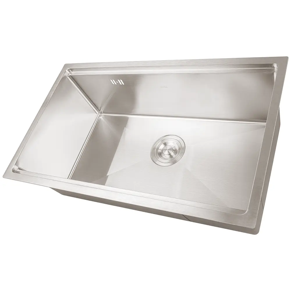 Мийка, виконана з нержавіючої сталі AISI 304, забезпечує безпеку контакту з продуктами харчування, стійкість до подряпин та корозії. Сплав, що містить 18% хрому та 8% нікелю, гарантує тривалий термін служби та збереження зовнішнього вигляду.