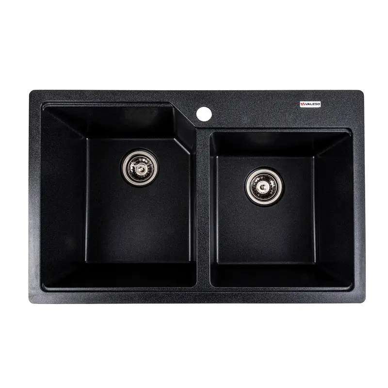 Гранитная мойка для кухни VALESO ROXY 3744 матовая Черный металлик