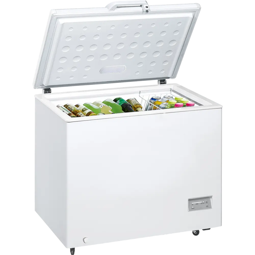 Морозильный ларь Kernau KFCF 2611.1 EW имеет электронное управление, которое позволяет точно контролировать температуру внутри устройства. Функция суперзамораживания быстро и в нужном темпе замораживает большие количества продуктов. В случае отключения электроэнергии устройство поддерживает низкую температуру, и мы можем хранить в нем продукты более 36 часов. Морозильная камера оснащена петлями с балансировкой крышки в диапазоне 45-90 °, фиксирующими крышку в левом положении. Благодаря этому вы можете без излишней спешки достать или положить внутрь еду. Светодиодные лампы, размещенные внутри устройства, облегчают использование, освещая продукты, даже если оборудование находится в плохо освещенном помещении. Функция Winter Resistant позволяет устанавливать оборудование в неотапливаемом или плохо отапливаемом помещении, даже когда температура опускается до десятка или около того градусов ниже нуля. Оборудование имеет высокий энергетический класс - А++.