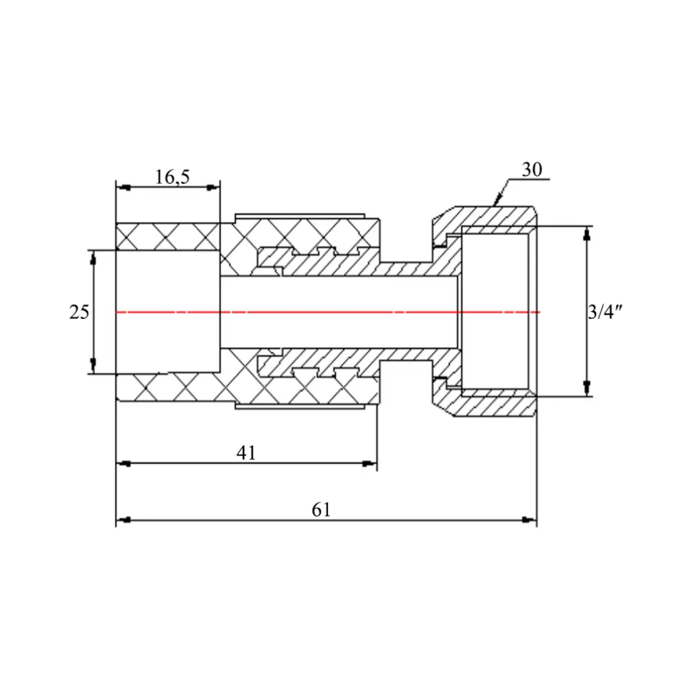 Муфта PPR Blue Ocean з накидною гайкою 25х3/4" ВР служить для з‘єднання поліпропіленової труби зі сталевою або з елементом інженерної системи з нарізним підключенням. Вона складається з поліпропіленового корпусу з внутрішньою трубною різьбою з латуні діаметром 3/4" і накидної шестигранної гайки. Зі зворотного боку розташований вихід з діаметром 25 мм для підключення методом зварювання. Завдяки матеріалу виготовлення виріб швидко нагрівається та не прилипає до насадок паяльника.