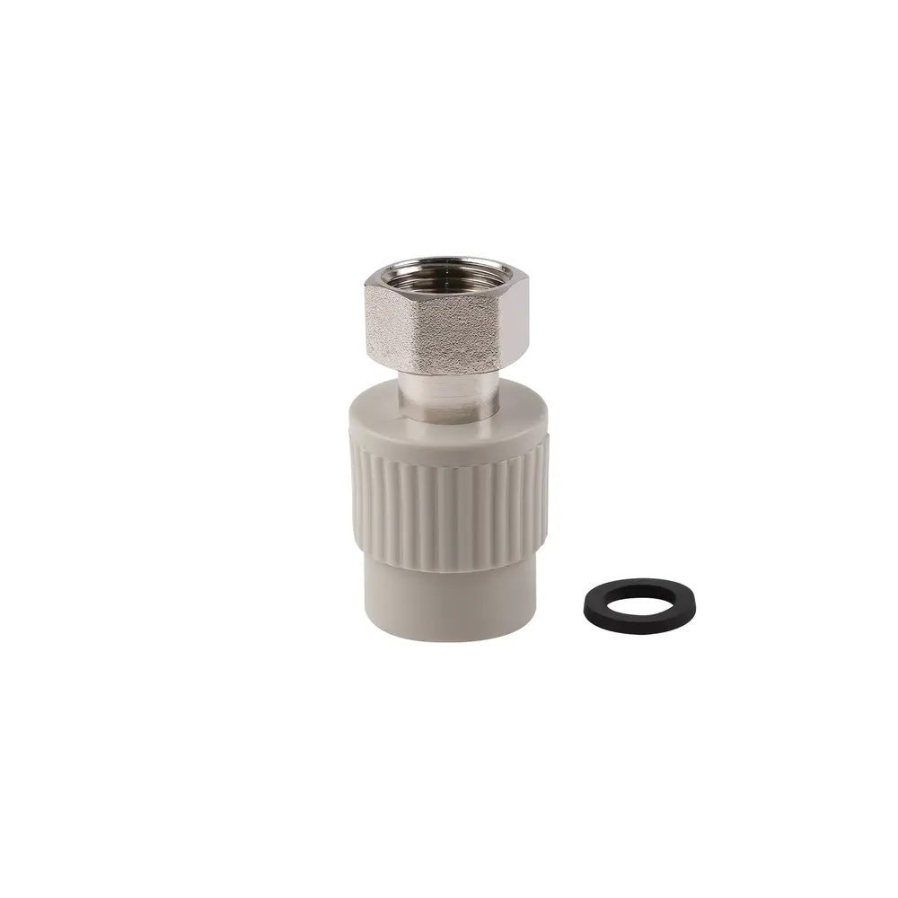 Муфта PPR Thermo Alliance с накидной гайкой 20х1 / 2 "позволяет выполнить резьбовое соединение. Прямой комбинированный фитинг сделан из полипропилена и латуни. Гайку с внутренней резьбой 1/2" сначала накручивают вручную, а затем подтягивают гаечным ключом. Для стыковки муфты с концом ППР трубы необходим полифузний паяльник с насадками соответствующего размера. Качественный материал изготовления не налипает на инструмент при нагреве.