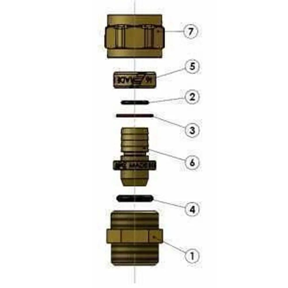Габариты: 11 / 4x32 на 32 металлопластиковых труб < br /> Муфты серии 701 L были спроектированы и реализованы для оказания помощи установщика, сокращая время на монтаж и увеличивая характеристики устойчивости во времени. Кроме того, данная серия фитингов не требует специальных инструментов для монтажа Устойчивость крепления между трубой и фитингом гарантируется одновременным наличием двух уплотнительных колец (2), расположенных в елке (6) и особой, противоскользящей, формой самой елки (в виде зубьев пилы). Крепление трубы происходит за счет особого вида прессования, состоит из радиального прессования, полученного за счет завинчивания гайки (7) которая определяет сжатие разрезанной оживальной части (5) вокруг трубы и осевого прессования, которое сжимает уплотнительное кольцо (4) на корпусе. Подобная система прессования гарантирует устойчивость полученного соединения в любых условиях работы. Кроме того, работая на латуни в прессовании, исключаются риски возникновения микротрещин. Наличие шайбы (3) с PTFE изолирует алюминий трубы от латуни фитинга избежание возникновения коррозионных эффектов