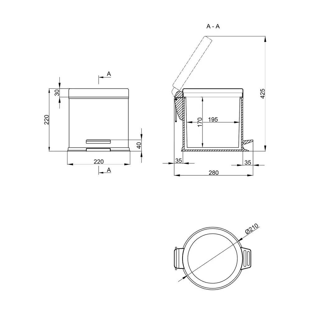 Мусорное ведро Lidz (CRM) 121.01.03 на 3 л не займет много места благодаря небольшим габаритам и подойдет для любого интерьера, придав ему целостности. Изделие изготовлено из качественного металла, что обеспечивает ему долговечность. Нижнее основание защищена резиновым уплотнением для предотвращения скольжения по полу. Крышка ведра открывается с помощью нажатия на металлическую прорезиненную педаль. Внутренний бак оборудован ручкой для быстрого и удобного извлечения из урны.