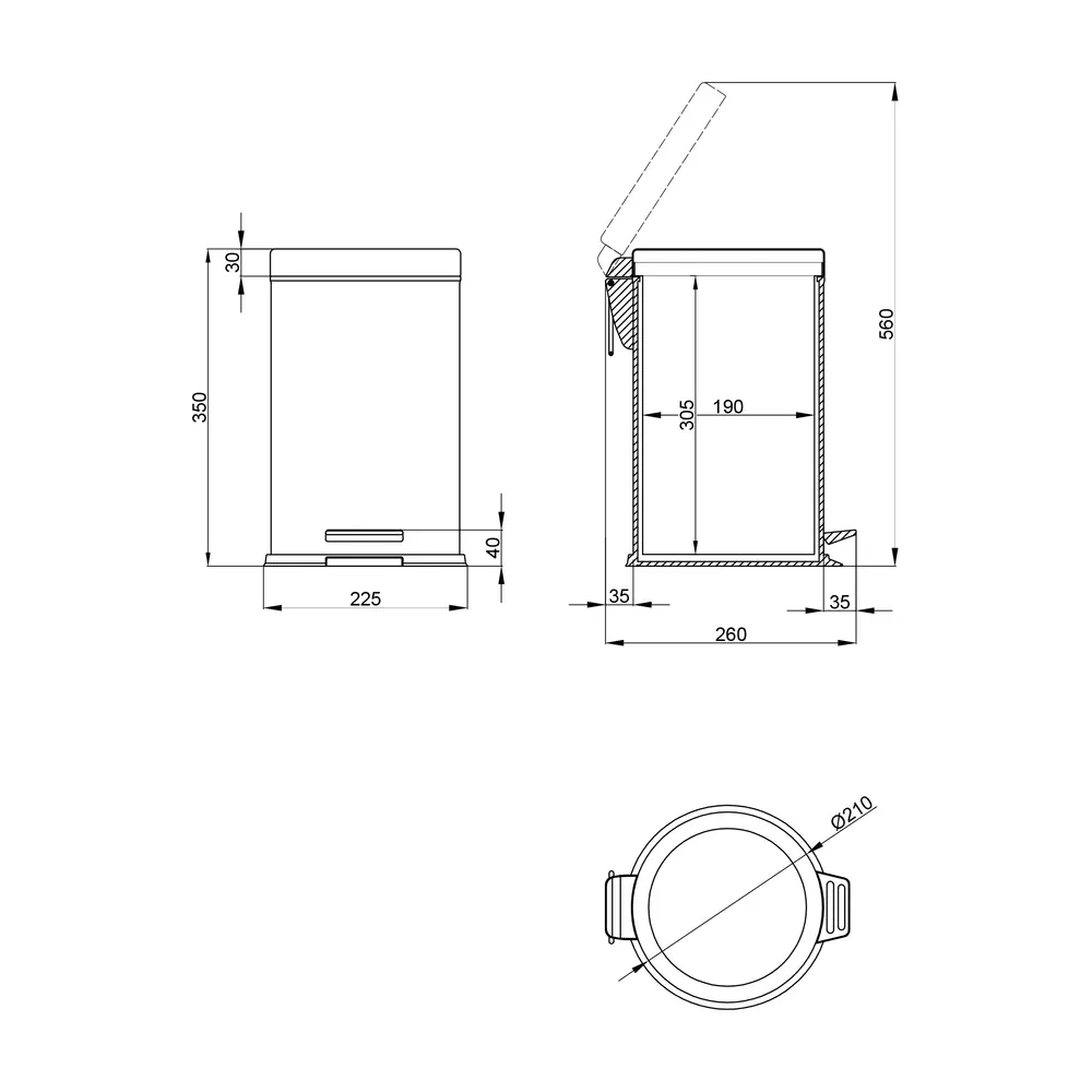 Металлическое ведро для мусора Lidz (CRM) 121.01.08 является доказательством того, что даже обычное ведро может стать стильным аксессуаром. Внутренний бак ведра изготовлен из черного пластика, рассчитанный на 8 л, оборудованный ручкой для быстрого и удобного извлечения из урны. Ведро оборудовано педалью для поднятия крышки без необходимости наклонятся и открывать ее руками. Нижнее основание защищена резиновым уплотнением для предотвращения скольжения по полу.
