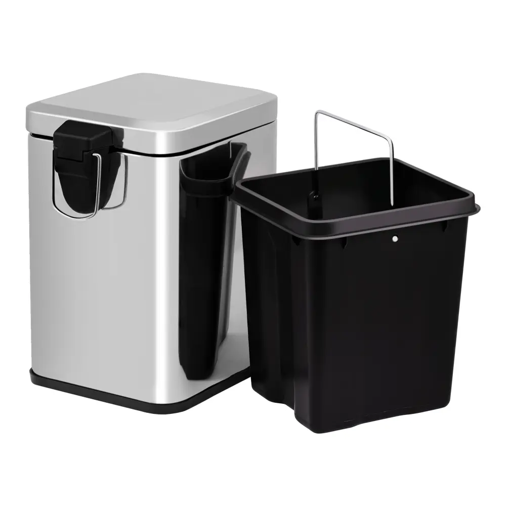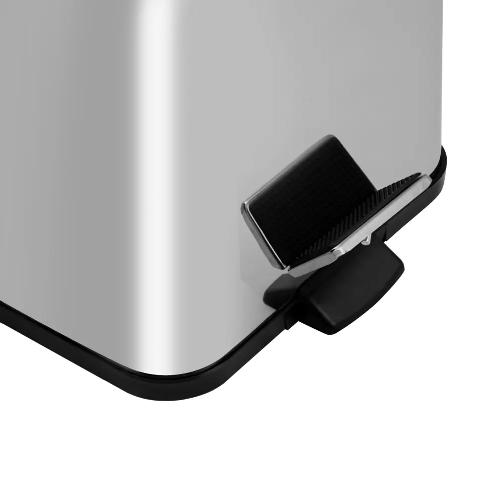 Мусорное ведро Lidz (CRM) 121.11.06 на 6 л не займет много места благодаря небольшим габаритам и подойдет для любого интерьера, придав ему целостности. Изделие изготовлено из качественного металла, защищает от влаги и обеспечивает ему долговечность. Нижнее основание защищена резиновым уплотнением для предотвращения скольжения по полу. Крышка ведра открывается с помощью нажатия на металлическую прорезиненную педаль. Внутренний бак оборудован ручкой для быстрого и удобного извлечения из урны.