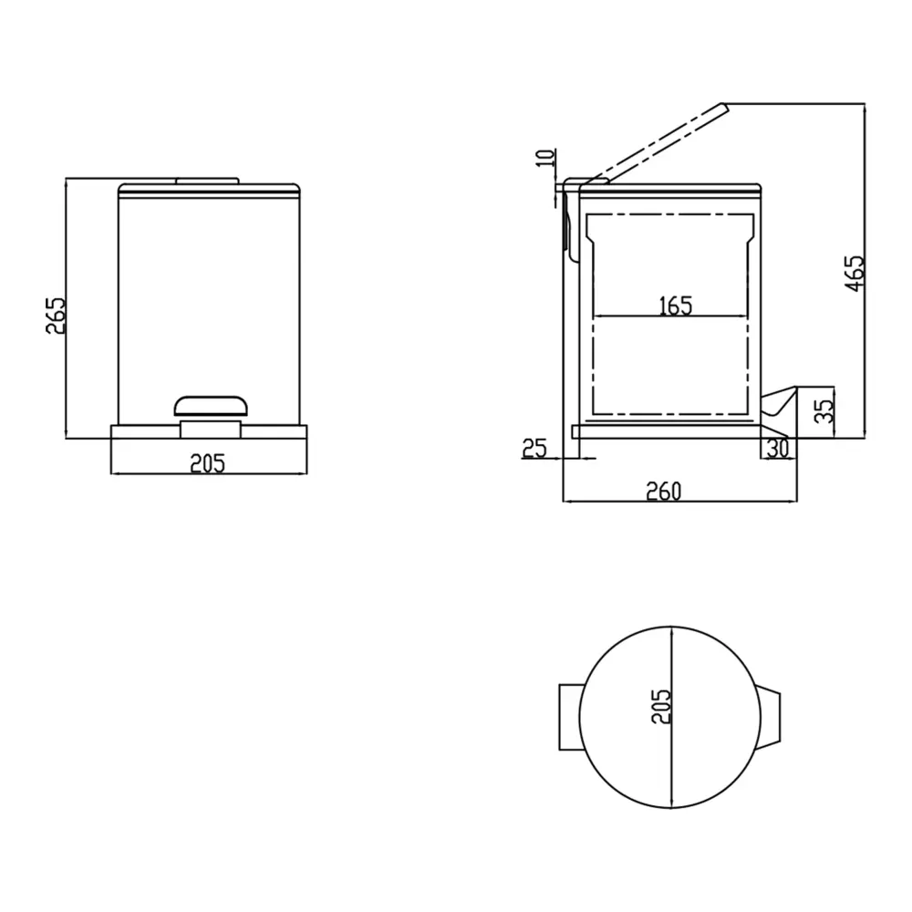 Відро для сміття Lidz (MCR) 121.21.05 є доказом того, що навіть звичайне відро може стати стильним аксесуаром. Внутрішній бак відра виготовлений з чорного пластику, розрахований на 5 л, обладнаний ручкою для швидкого і зручного виймання з урни. Відро обладнано педаллю для підняття кришки без необхідності нахиляться і відкривати її руками. Нижня основа захищена гумовим ущільненням для уникнення ковзання по підлозі.