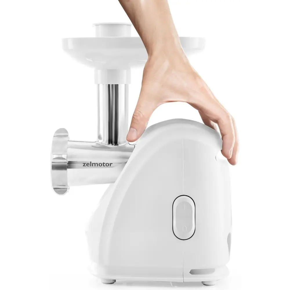 Очень эффективная мясорубка ZELMOTOR 489.8 характеризуется высокой рабочей мощностью - пиковая мощность - 1900 Вт, благодаря которой она способна перерабатывать до 2,5 кг мяса в минуту. Устойчивость устройства во время работы обеспечивается прорезиненными не скользящими ножками. Мясорубка имеет предохранительную муфту для защиты двигателя от повреждений в случае блокировки. Машинка также имеет удобный шнур для намотки вокруг корпуса с местом для подключения сетевого кабеля.ZELMOTOR 489.8 оснащен тремя видами решеток из нержавеющей стали с диаметром отверстий 2,7 мм, 4 мм и 8 мм соответственно. Также есть толкатель, загрузочный лоток, насадка для изготовления сосисок, дополнительная предохранительная втулка и двухсторонний нож. Мясорубка имеет профилированную встроенную ручку для удобной и безопасной переноски устройства.