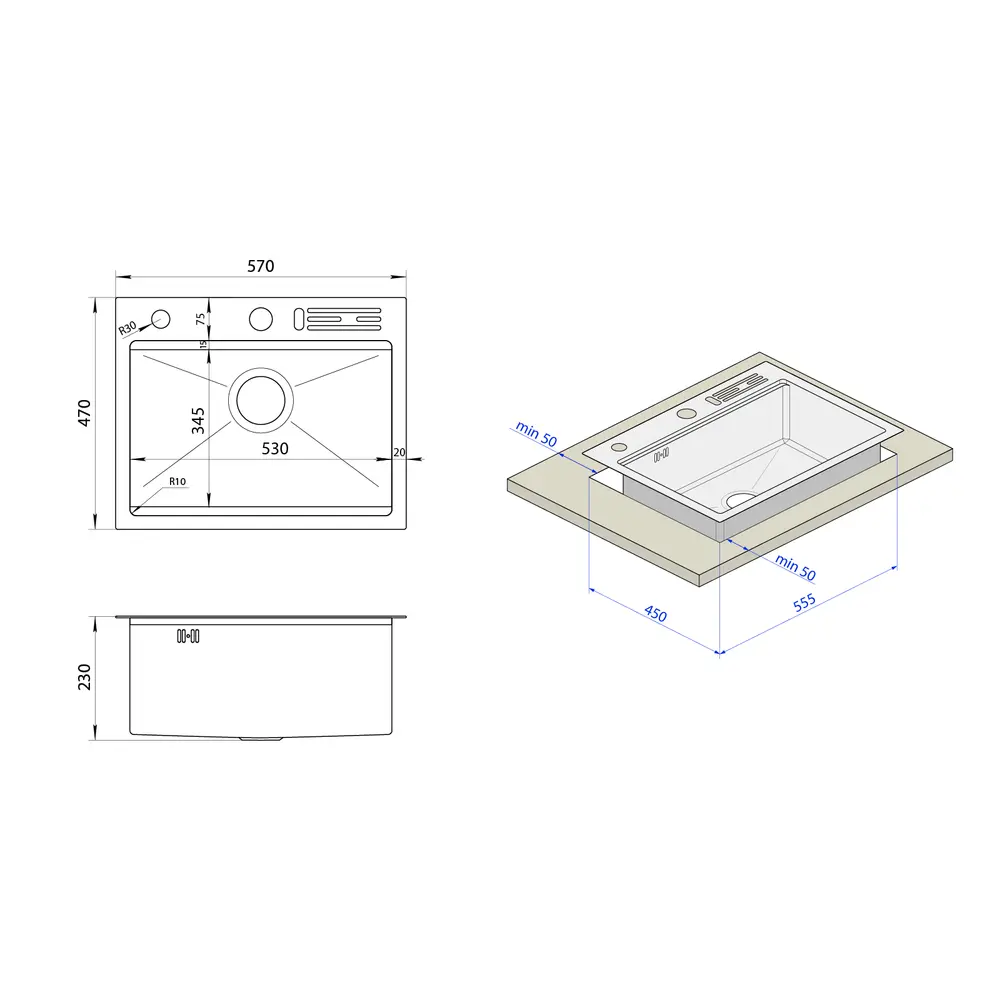 Ми пропонуємо мийку нового типу з інтегрованим отвором для ножів. Тепер вам не потрібно витрачатися на додаткові підставки та займати цінний простір на вашій кухні. Позбавтеся зайвих елементів та місць накопичення бруду, обравши нашу інноваційну мийку!