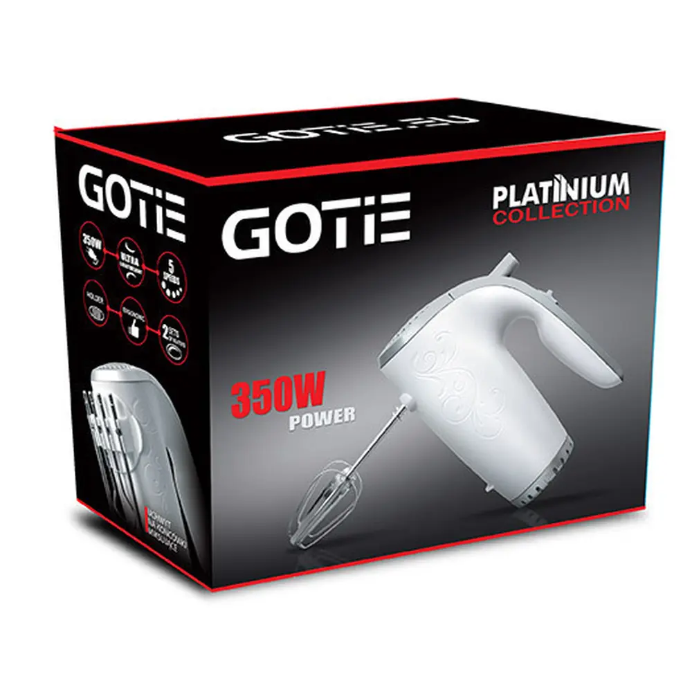 Наша філософія полягає в тому, щоб зробити використання пристроїв GOTIE комфортним і приємним. Висока якість використовуваних компонентів гарантує зручну складання та розбирання. Проста робота міксера, ергономічна ручка і надійний двигун потужністю 350 Вт дозволяють легко використовувати повну функціональність пристрою і допоможуть у втіленні ваших найсміливіших кулінарних ідей. P>