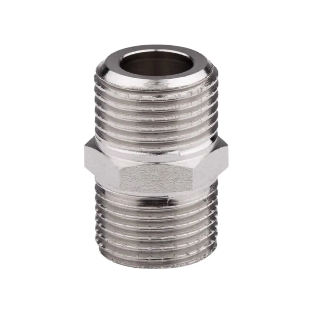 Ніпель SD Forte підключення 1/2" ЗЗ виготовлений з нікельованої латуні, призначений для з‘єднання труб однакового діаметра.