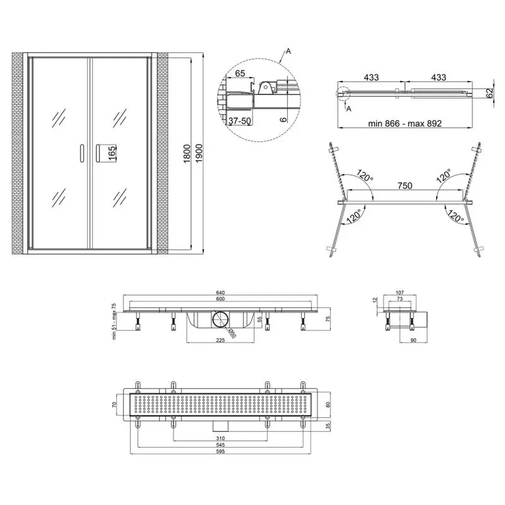 Трап з регулюванням висоти: 51-75 мм. Довжина ущільнювальної стрічки: 1500 мм.