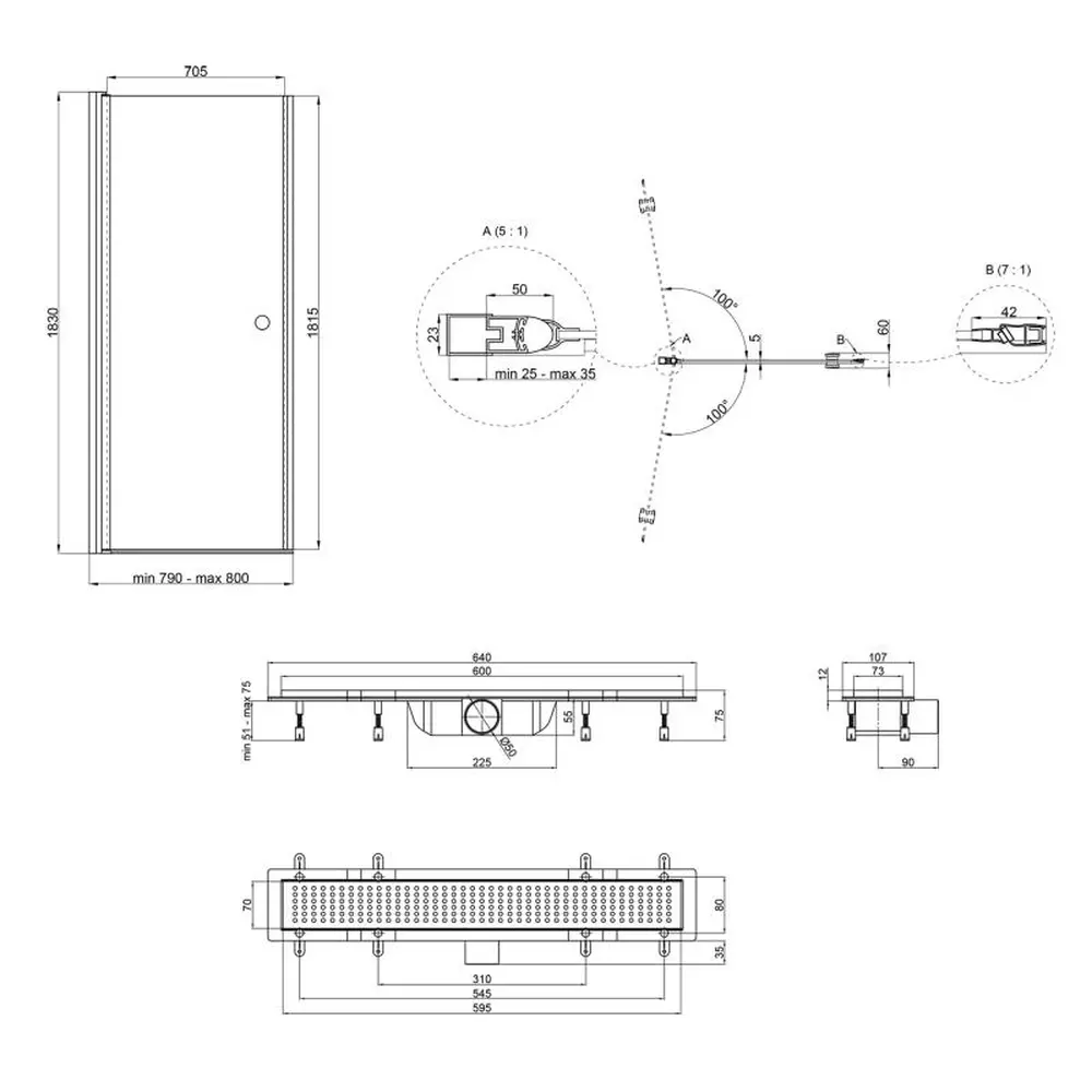 Трап з регулюванням висоти: 51-75 мм. Довжина ущільнювальної стрічки: 1500 мм.