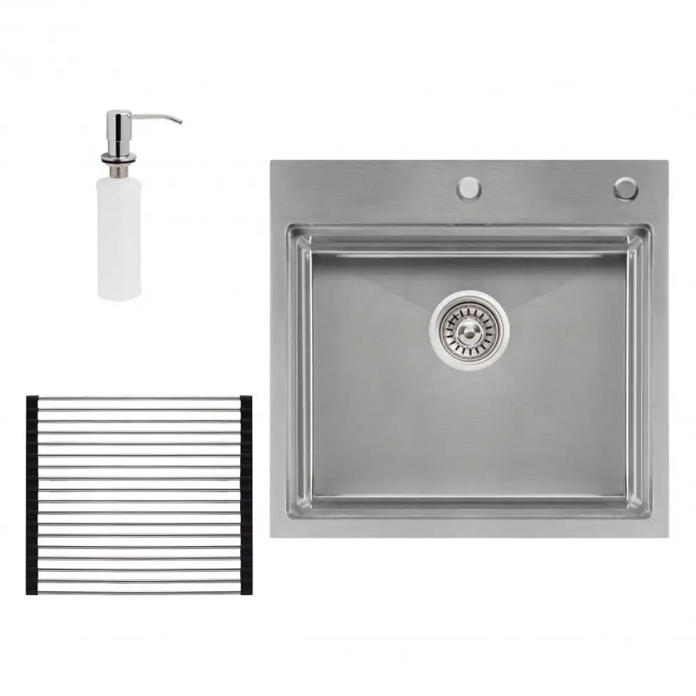 Набір 3 в 1 Qtap кухонна мийка DH5050 + сушарка + дозатор для миючого засобу допоможе вирішити питання облаштування мийної зони. До складу набору входить сучасна прямокутна кухонна мийка, яка виготовлена із міцної нержавіючої сталі, компактна сушарка для посуду та дозатор для миючого засобу. Набір здатний задовольнити найвищі вимоги, оскільки всі вироби виготовлені з якісних матеріалів, що підвищує термін експлуатації.