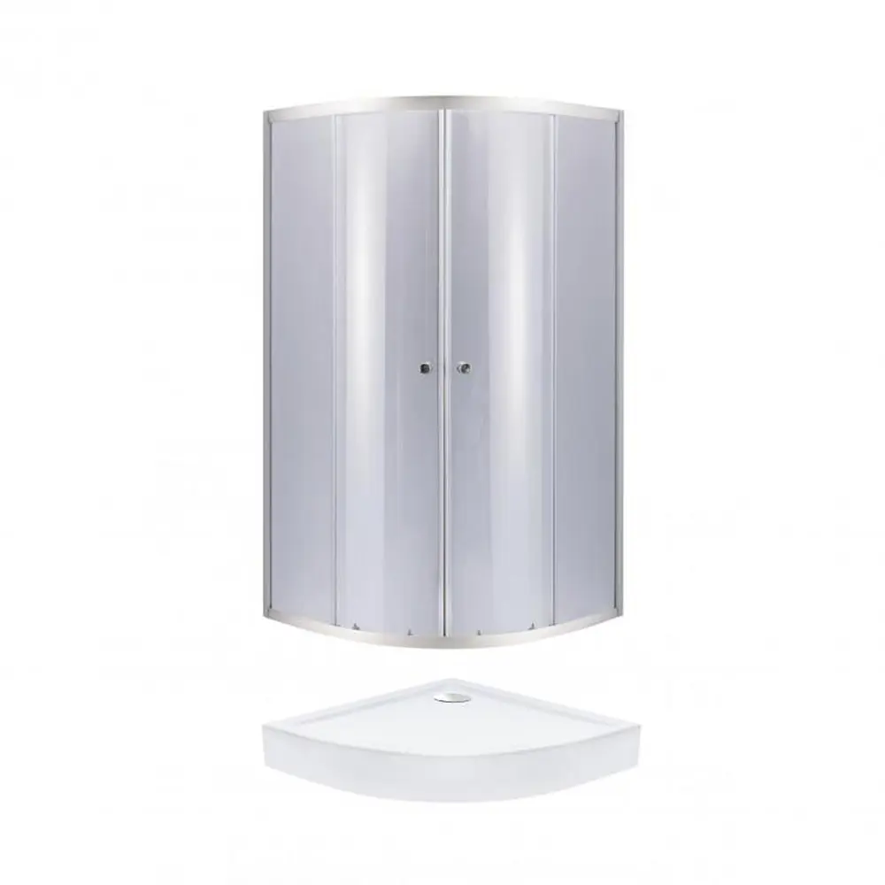 Подвійні ролики, ручки, комплект кріплень, глухе скло, скляні двері, профіль. Піддон, ніжки, сифон із гідрозатвором.