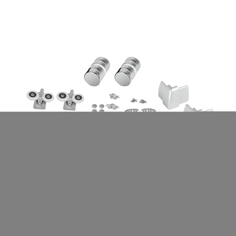 Піддон, подвійні ролики, ручки, комплект кріпильних деталей, глухе скло, скляні двері, профіль, ніжка.