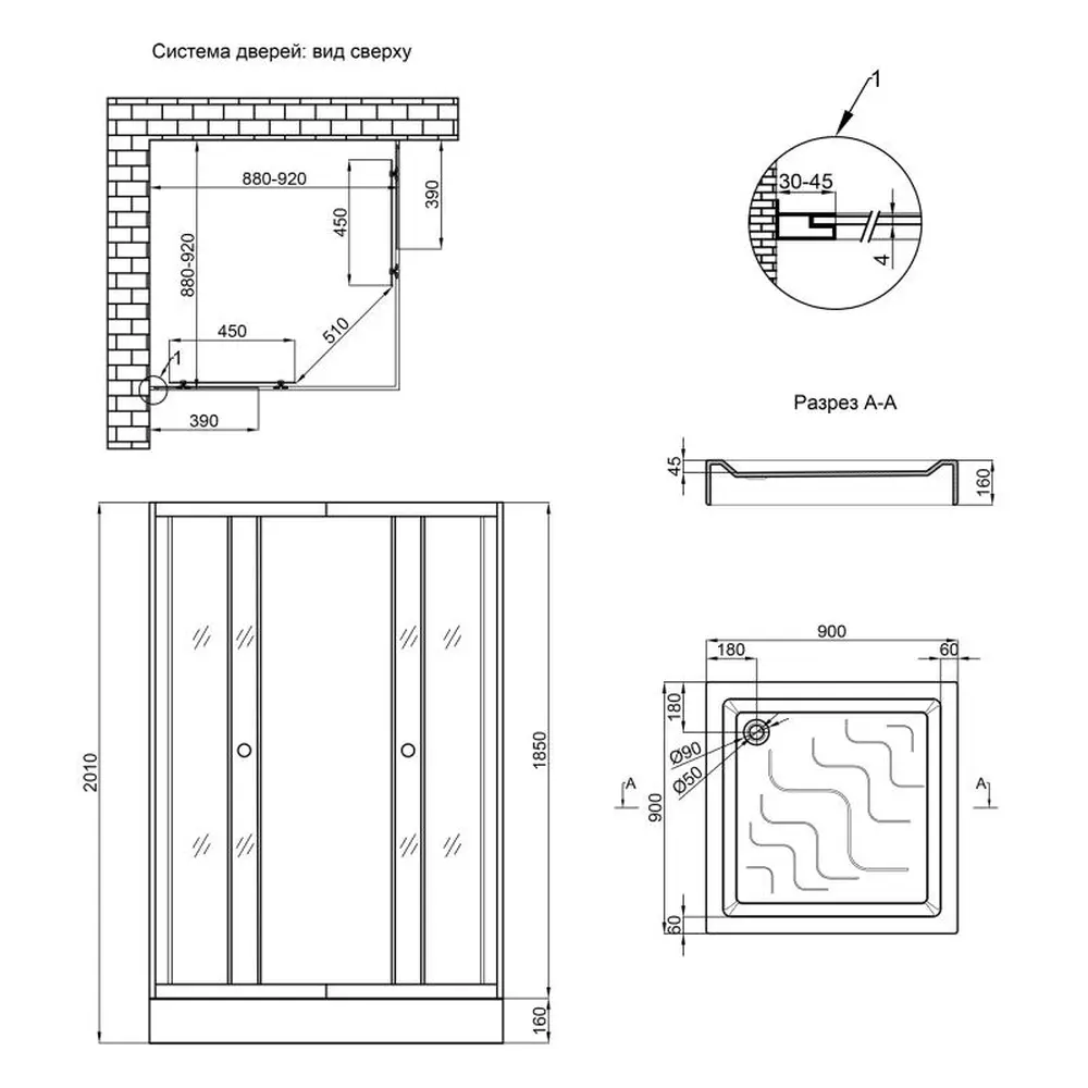 Душова кабіна: SC90x90.SAT.LOW.L. Піддон: ST90x90x16.
