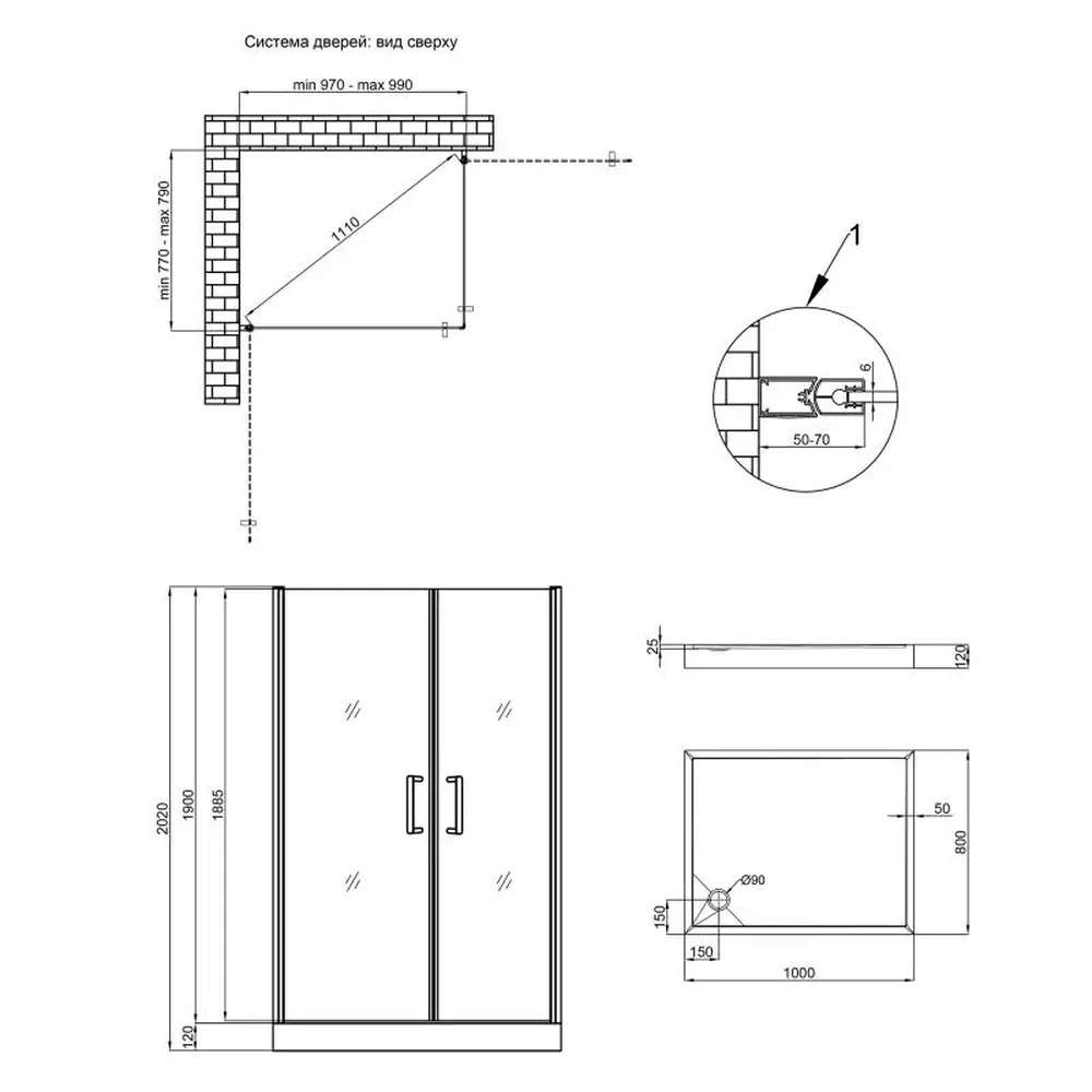 Душовий бокс: CRM1018RC6. Піддон: 301812C.