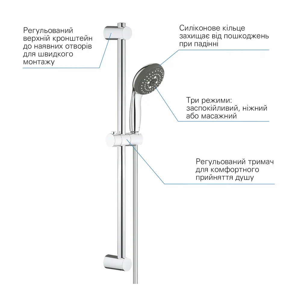 Душовий гарнітур зі штангою, 3 режими струменя Grohe QuickFix Vitalio Start 26032000