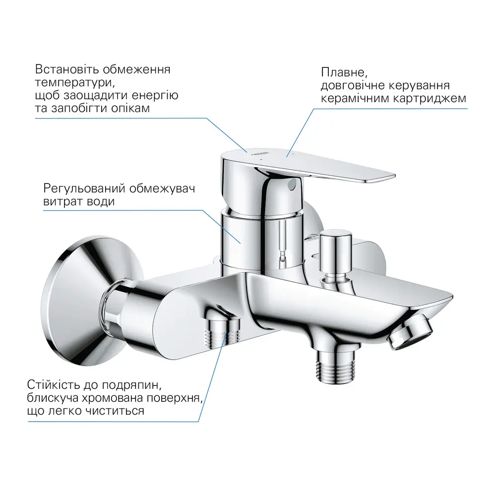 настінний монтаж, металевий важіль керування, GROHE Longlife керамічний картридж 35 мм зі стопором Eco-Override