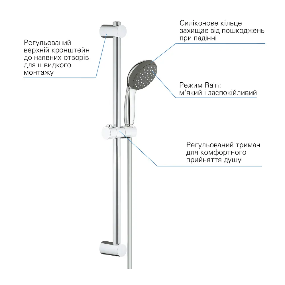 Душовий гарнітур зі штангою, 1 режим струменя Grohe QuickFix Vitalio Start 27942000