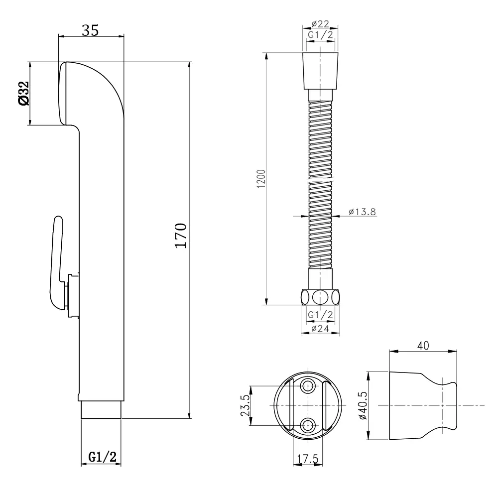 Лійка для гігієнічного душу, Тримач для душу, Душовий шланг, Кріпильні деталі