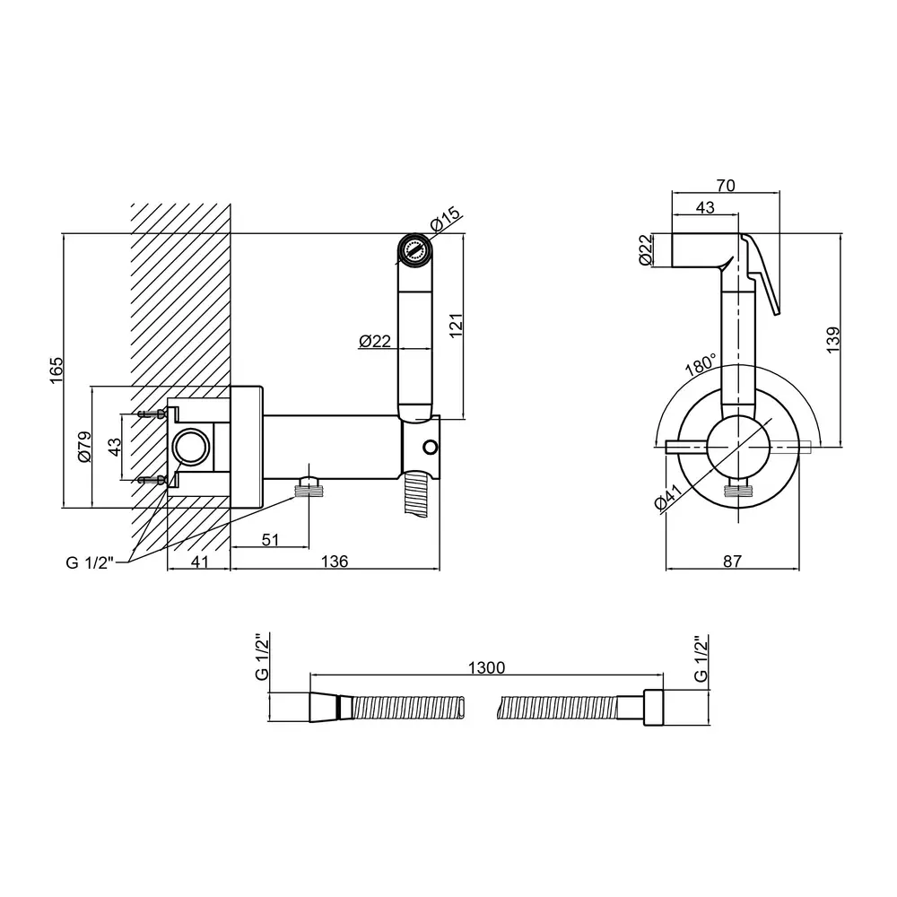 Лійка для гігієнічного душу, Душовий шланг, Шланг під'єднення, Кріпильні деталі