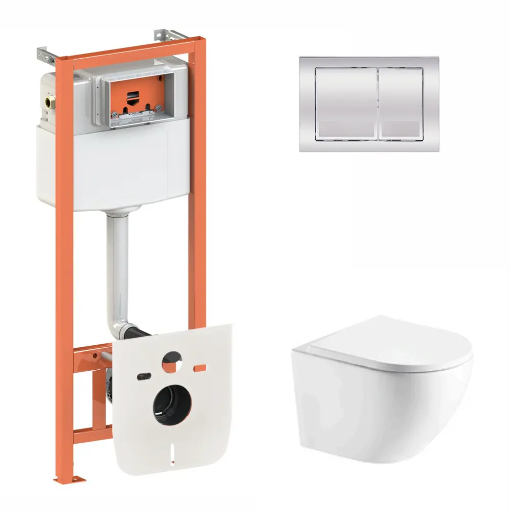 Набор Qtap инсталляция 3 в 1 Nest QT0133M425 с панелью смыва квадранте QT0111M06028CRM + унитаз с сиденьем Robin QT1333046ENRW является удобным решением для современного санузла. Он комплектуется унитазом, сиденьем, инсталляционной рамой, панелью смыва, звукоизоляционной прокладкой. Благодаря застенные монтажа инсталляции и подвесной конструкции унитаза этот комплект сделает Ваши гигиенические процедуры более комфортными, а уборка не добавит лишних хлопот.