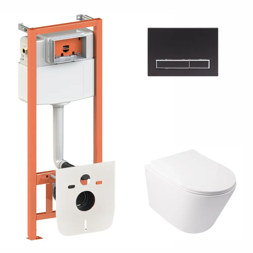 Набір Qtap інсталяція 3 в 1 Nest QT0133M425 з панеллю змиву лінійною QT0111M08V1091MB + унітаз з сидінням Swan QT16335178W є зручним рішенням для сучасного санвузла. Він комплектується унітазом, сидінням, інсталяційною рамою, панеллю змиву, звукоізоляційною прокладкою. Завдяки застінному монтажу інсталяції і підвісній конструкції унітазу цей комплект зробить Ваші гігієнічні процедури більш комфортними, а прибирання не додасть зайвого клопоту.