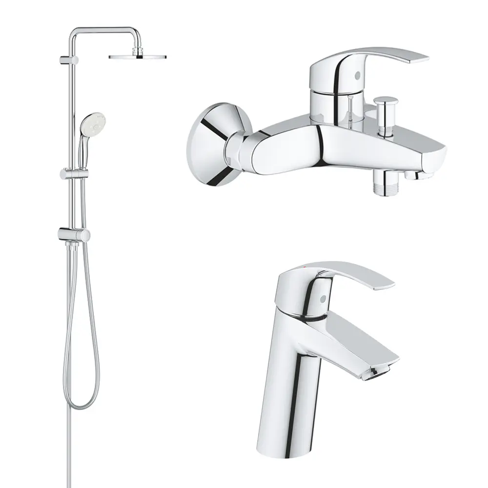 Змішувач для ванни Eurosmart (33300002), змішувач для раковини Eurosmart (23324001), душова стійка Tempesta (27389002)
