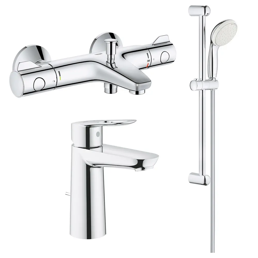Змішувач термостатичний для ванни Grohtherm 800 (34567000), змішувач для раковини BauLoop (23762000), душовий гарнітур New Tempesta 100 (27598001)