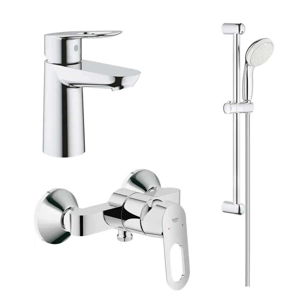 Набір змішувачів Grohe BauLoop S-Size 123220S стане ідеальним варіантом для вашої ванної кімнати. Набір складається зі змішувача для душу BauLoop (32816000), змішувача для раковини BauLoop (23337000), душового гарнітура New Tempesta 100 (27598001). Економна витрата води, якісне хромоване покриття і плавність ходу важеля здатні зробити використання набору максимально комфортним.