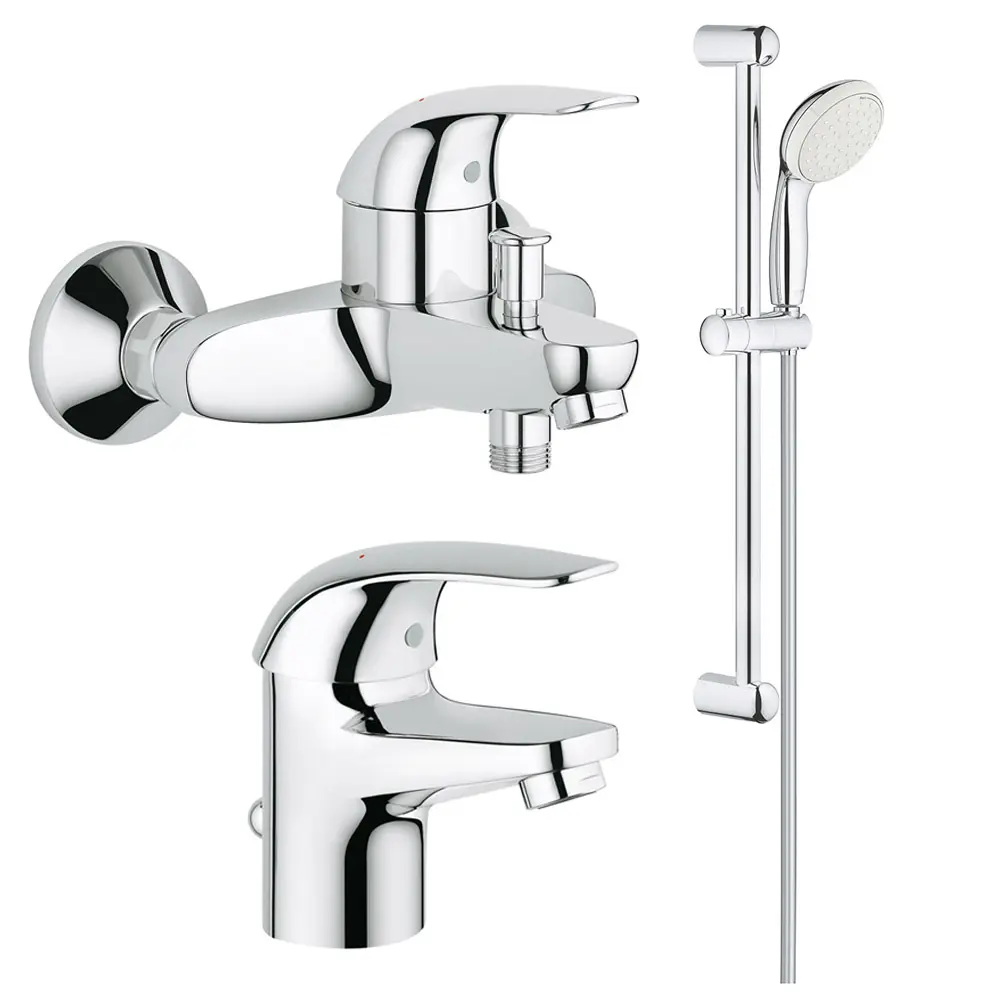 Набір змішувачів Grohe Euroeco 123226S - вдале рішення комплектації вашої ванної кімнати. У комплекті змішувач для ванни Euroeco (32743000), змішувач для раковини Euroeco (23262000), душовий гарнітур New Tempesta 100 (27598001). Якісне покриття та економне споживання води є вагомими аргументами, щоб зупинити вибір на даному наборі.