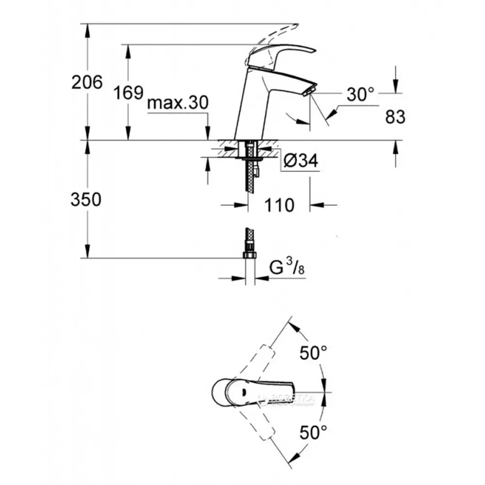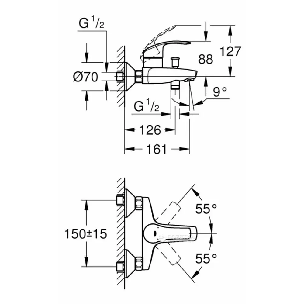 Змішувач для ванни (33300002), змішувач для миття (33202002), змішувач для раковини M-Size (23324001), душовий гарнітур, 2 режими струменя (27926001)