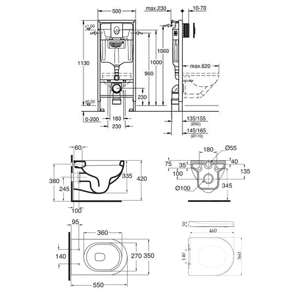 Набір унітаз Azzurra Nuvola NUV100EB1SOSK з сидінням Azzurra Nuvola NUV1800F + інсталяція Grohe Rapid SL 38721001 - міцна, надійна та гігієнічна конструкція, що дозволяє не тільки заощадити простір, але й надати більш сучасний вигляд санвузлу. Набір складається з унітазу, сидіння, інсталяції, панелі змиву. Головними перевагами даного набору є надійність, тиха робота та якісні довговічні матеріали.