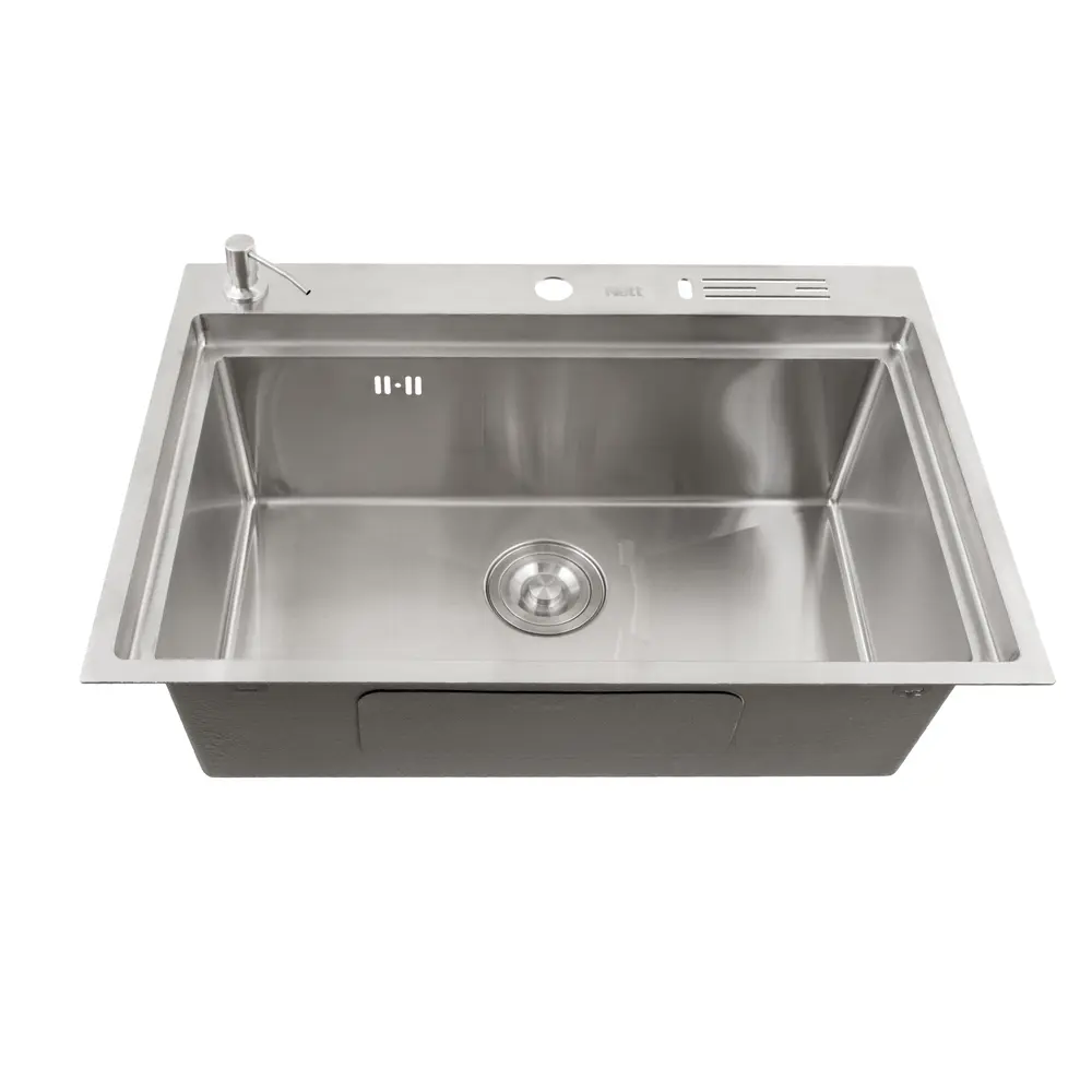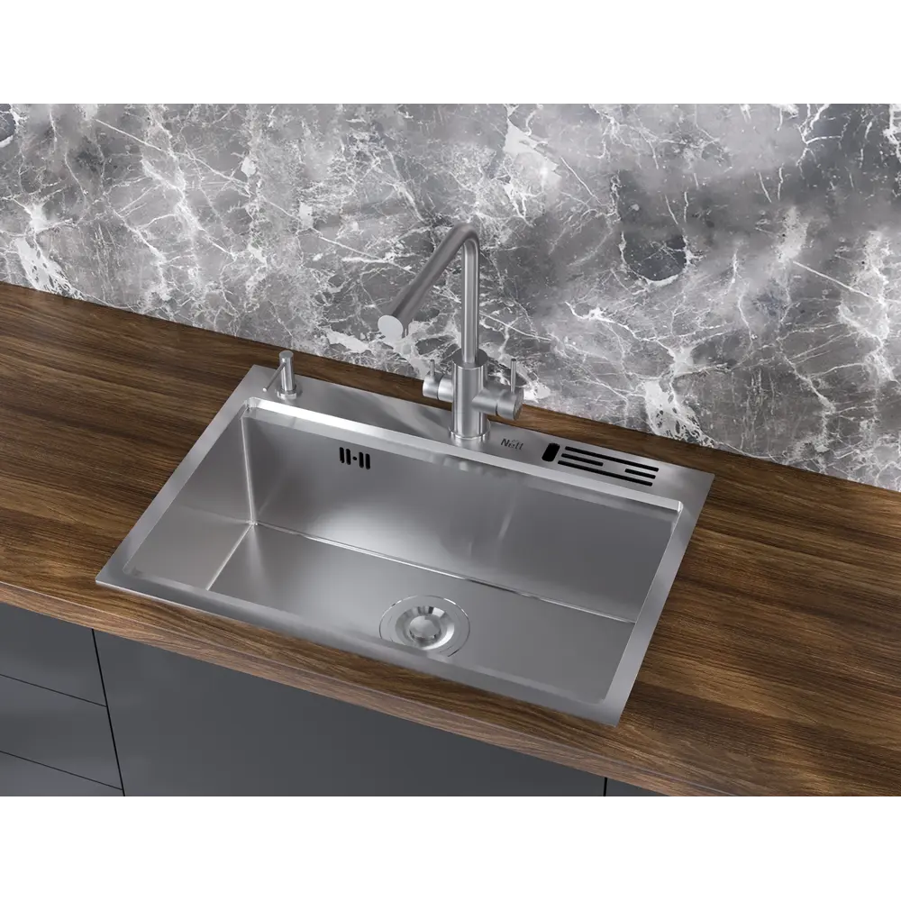 З товщиною сталі в 1 мм, мийка вдвічі товща за штамповані аналоги, що забезпечує їй підвищене навантаження, стійкість до подряпин і знижений рівень шуму при використанні.