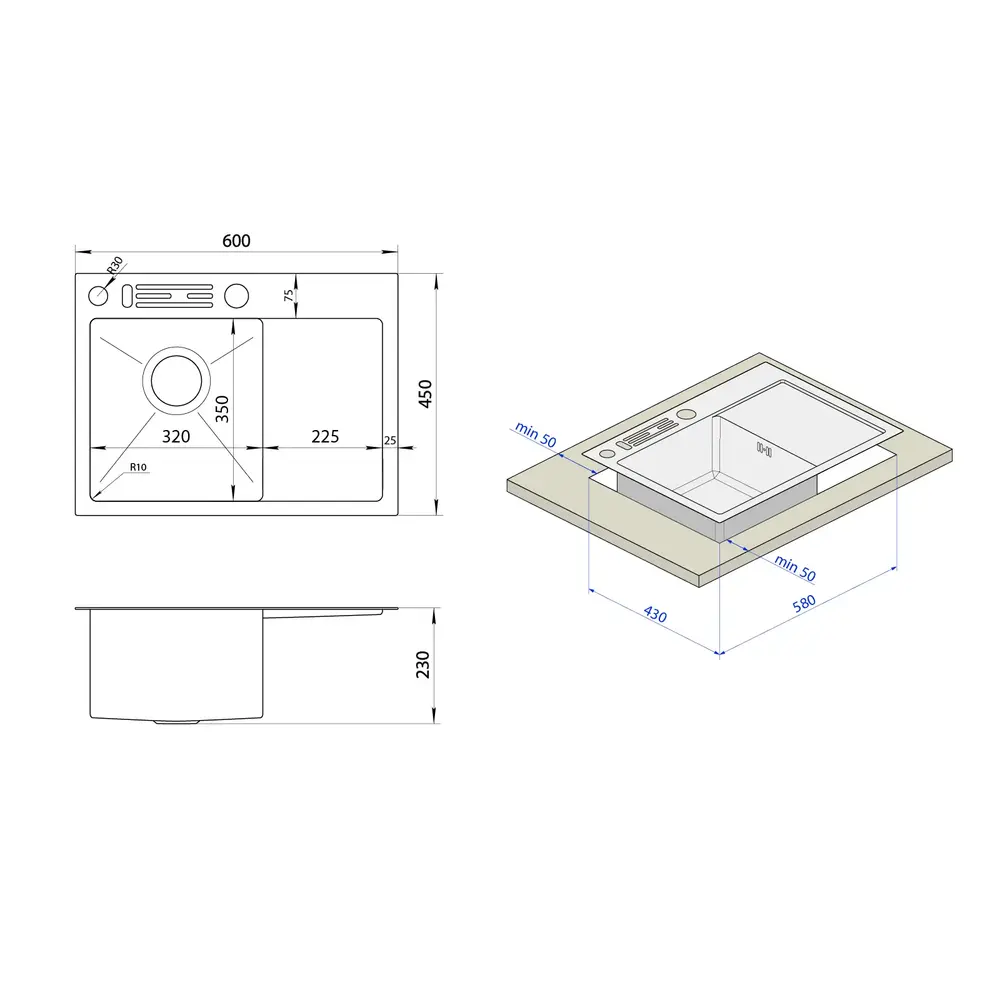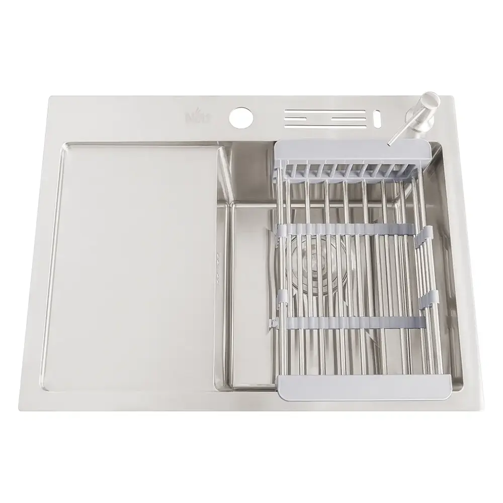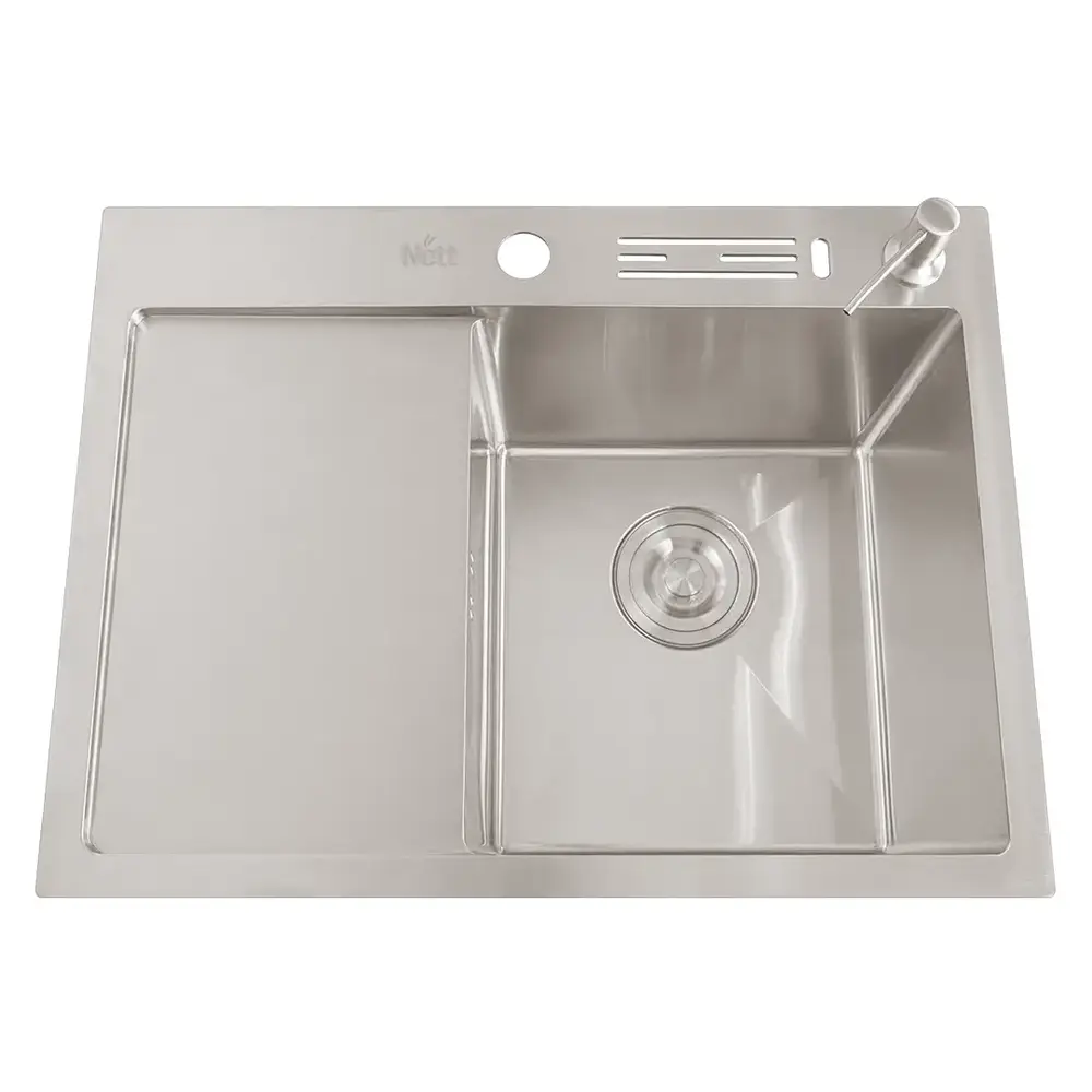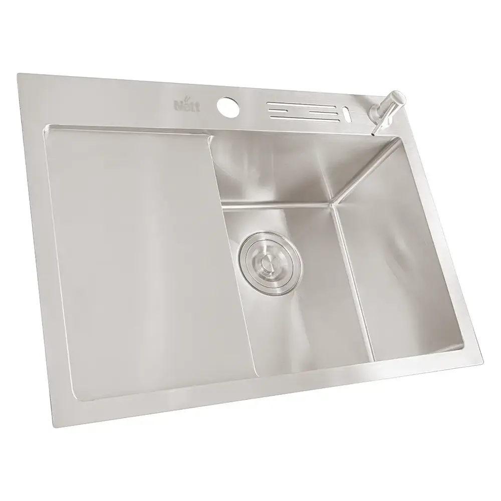 Обсяг раковини накладної дозволяє зручно мити продукти під час готування страв, а також посуд і набирати в високі ємності воду.