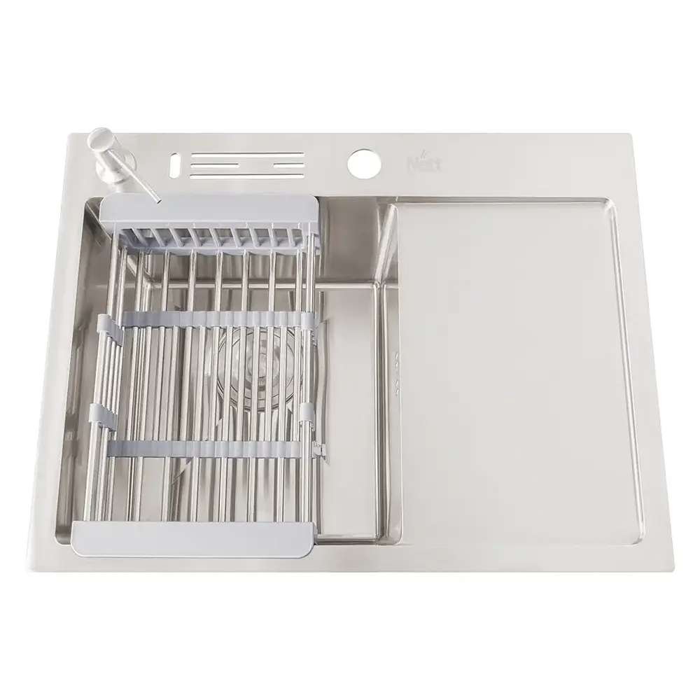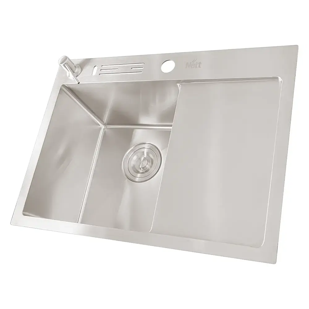 Обсяг раковини накладної дозволяє зручно мити продукти під час готування страв, а також посуд і набирати в високі ємності воду.