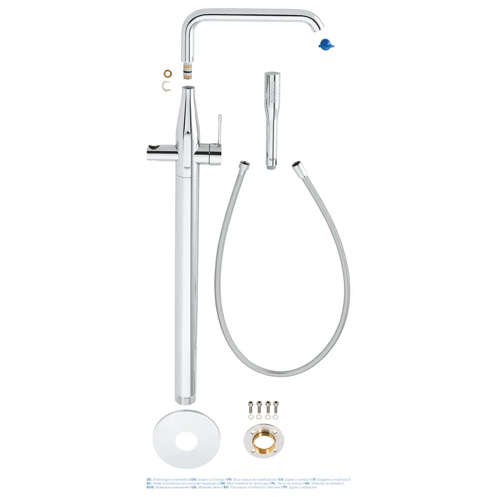 Комплект верхньої монтажної частини для 45984001. Без вбудованої частини. Автоматичний перемикач: ванна/душ. Вбудований зворотний клапан у душовому виході. Ручний душ 7.6 л./хв. Довжина душового шлангу: 1250 мм. Захист від зворотного потоку. Мінімаль