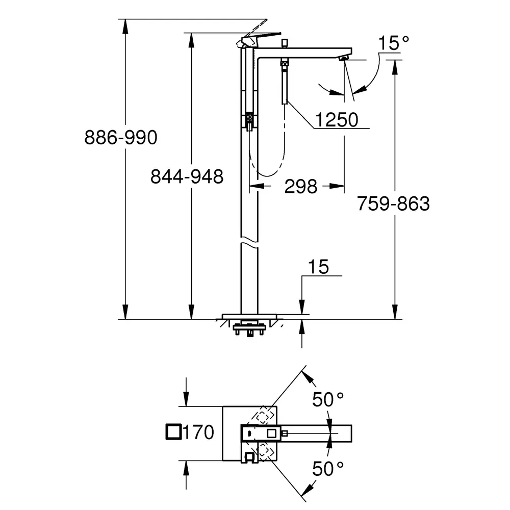Комплект верхньої монтажної частини для: 45984001, 29038001, 29086000. Без вбудованої частини. З обмежувачем температури. Автоматичний перемикач: ванна/душ. Довжина душового шлангу: 1250 мм. Вбудований зворотний клапан. Захист від зворотного потоку.