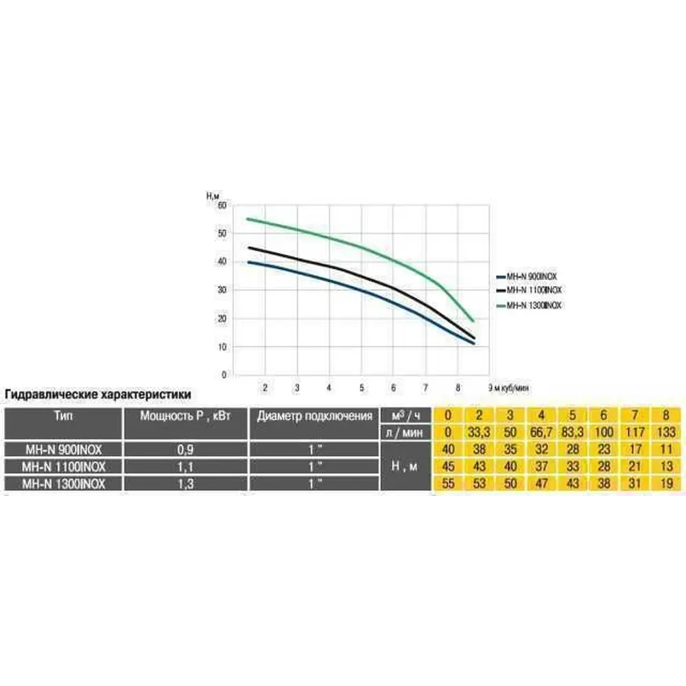 Висота підйому води даної моделі до 7 метрів. Кількість робочих коліс MH-N 1300INOX - 5.
