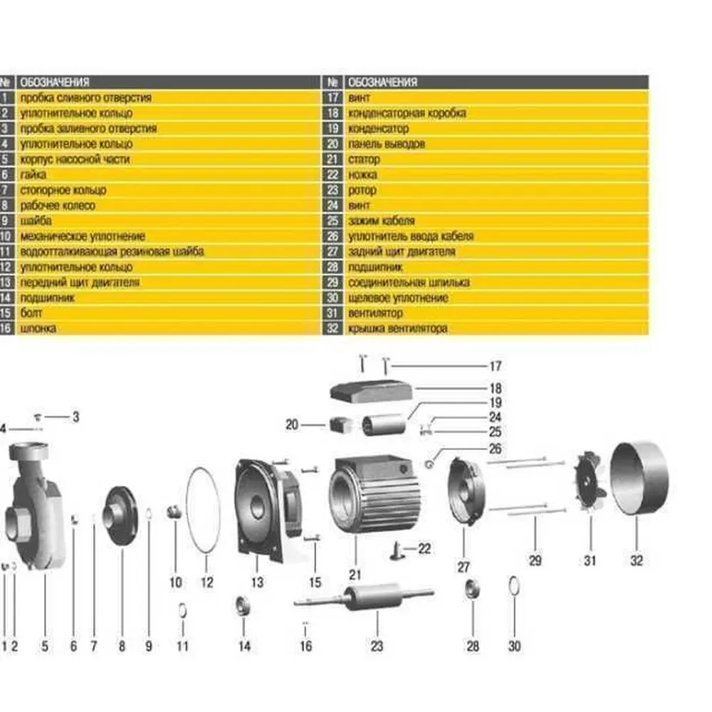 Конструкция рабочего колеса с широкими угловыми лопастями позволяет перекачивать воду с небольшим содержанием загрязнений.