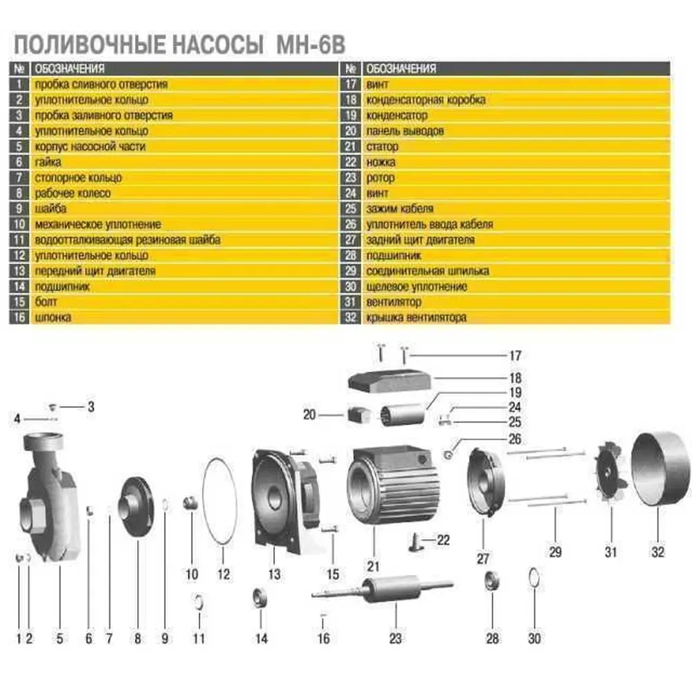Конструкція робочого колеса з широкими кутовими лопатями дозволяє перекачувати воду з невеликим вмістом забруднень.
