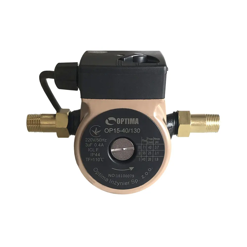 Циркуляційний насос Optima OP15-40 - це циркуляційний насос однофазний з «мокрим ротором» і регульованою швидкістю призначений для застосування в опалювальних системах закритого типу з примусовою циркуляцією або в системах з відкритим розширювальним баком.