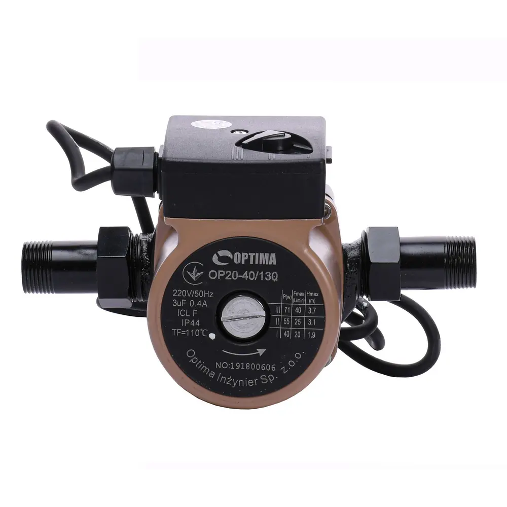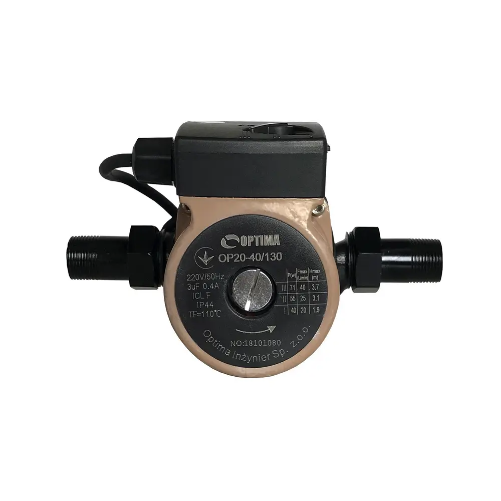 Циркуляційний насос Optima OP20-40 - це циркуляційний насос однофазний з «мокрим ротором» і регульованою швидкістю призначений для застосування в опалювальних системах закритого типу з примусовою циркуляцією або в системах з відкритим розширювальним баком.